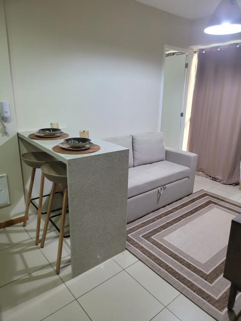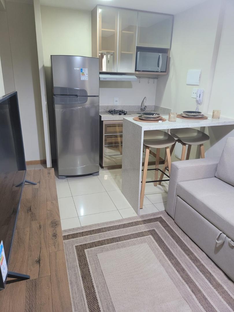 Imóvel reformado conta com: cama de casal, ar-condicionado, sofá 2 lugares, Tv Smart, geladeira aço inox, micro-ondas, itens de cozinha, armários planejados no quarto e cozinha...