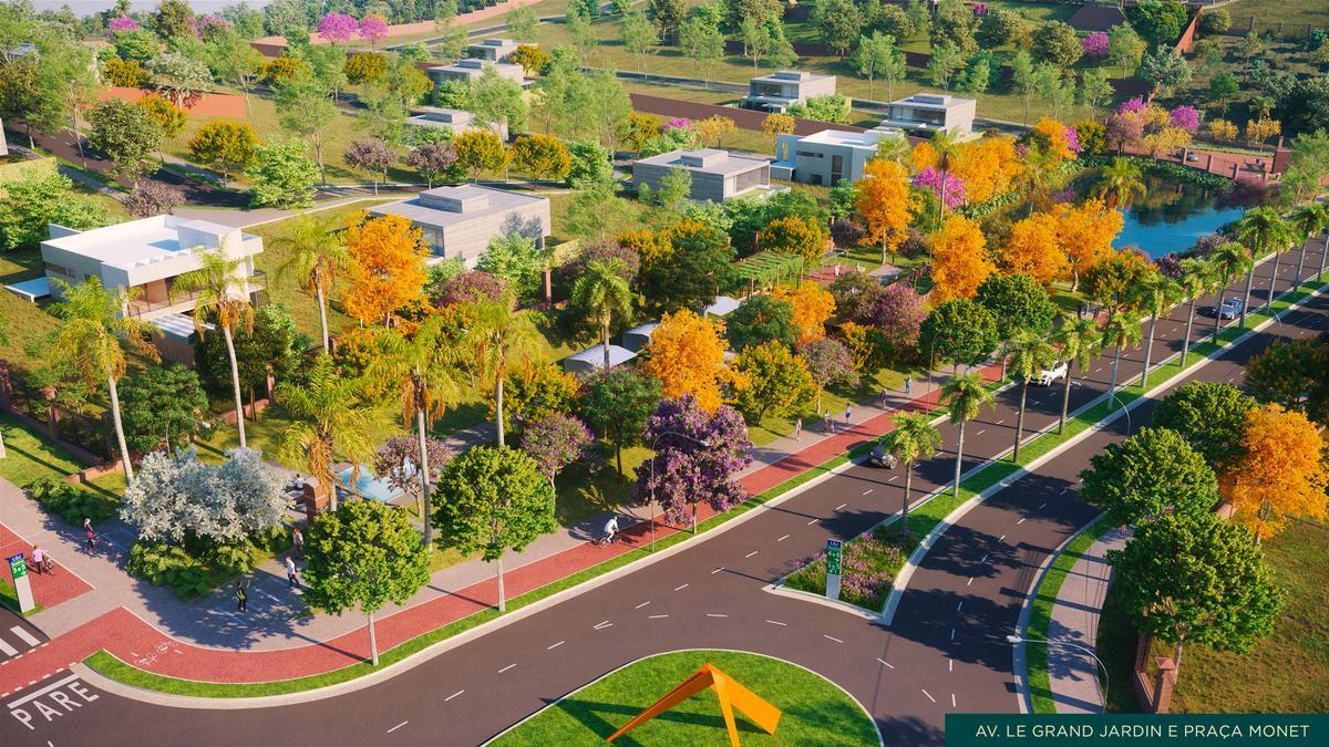 A avenida central, adornada com obras de arte do renomado escultor Omar Franco, em conjunto com a tranquila praça Monet e seu espelho d¿água, conferem ao Le Grand Jardin uma atmosfera de sofisticação e harmonia com a natureza.